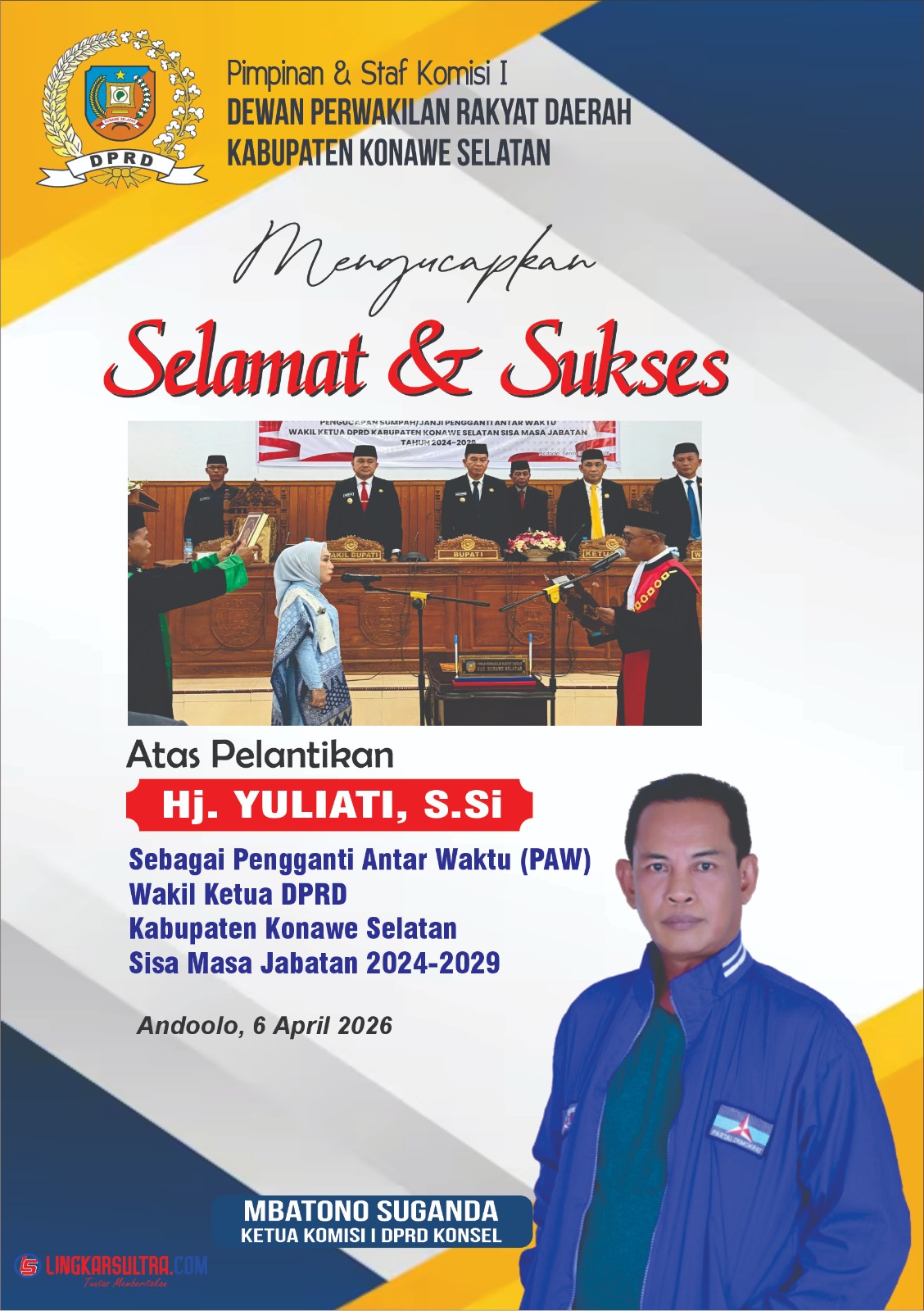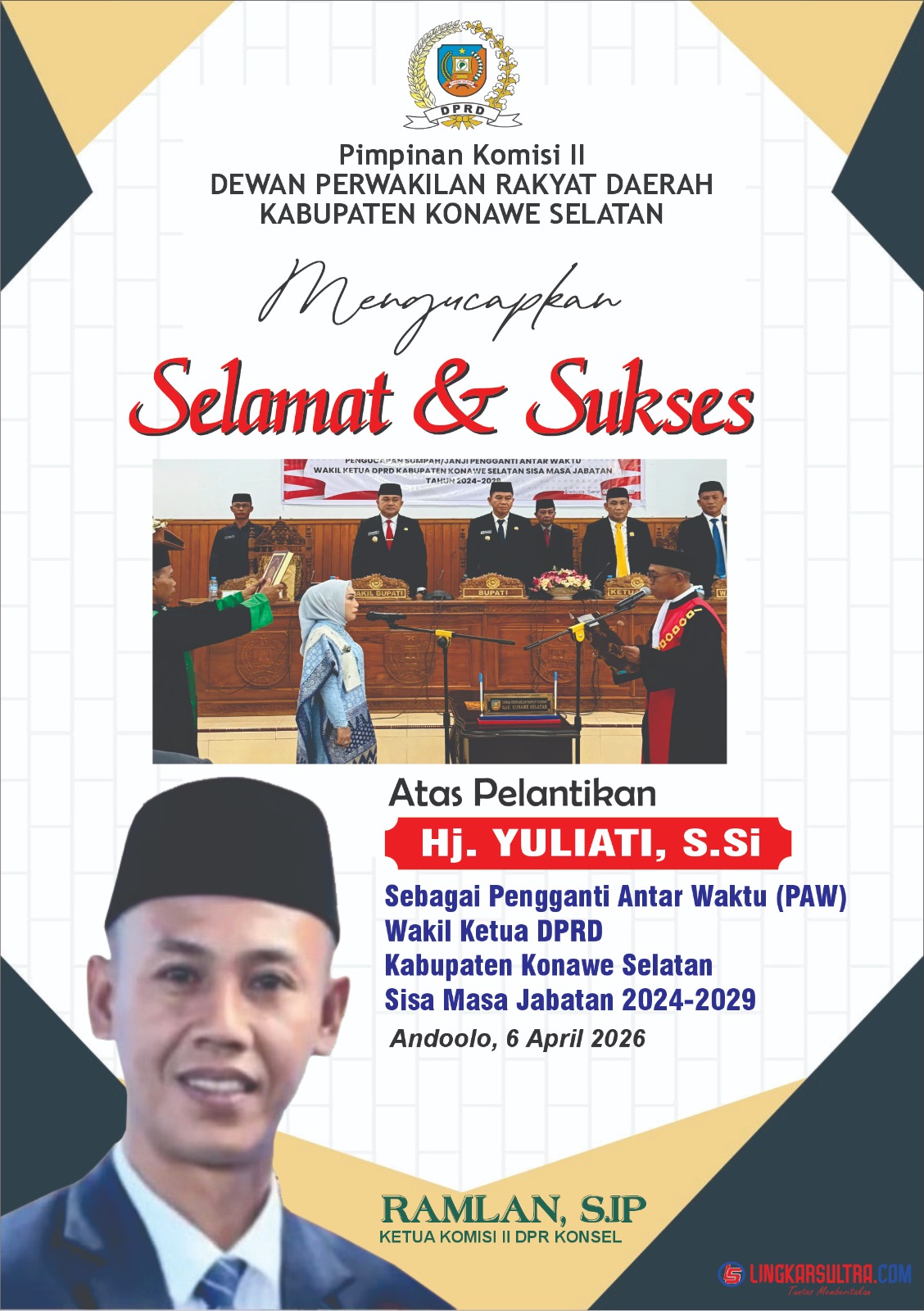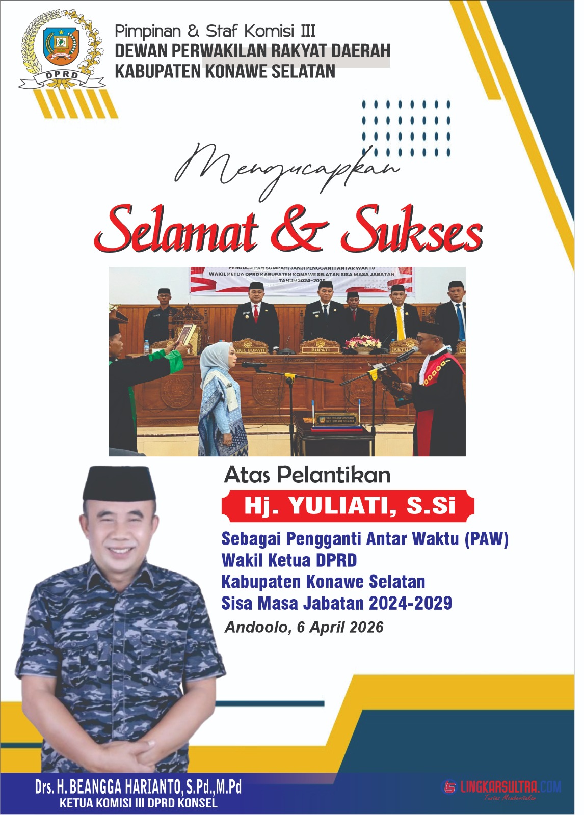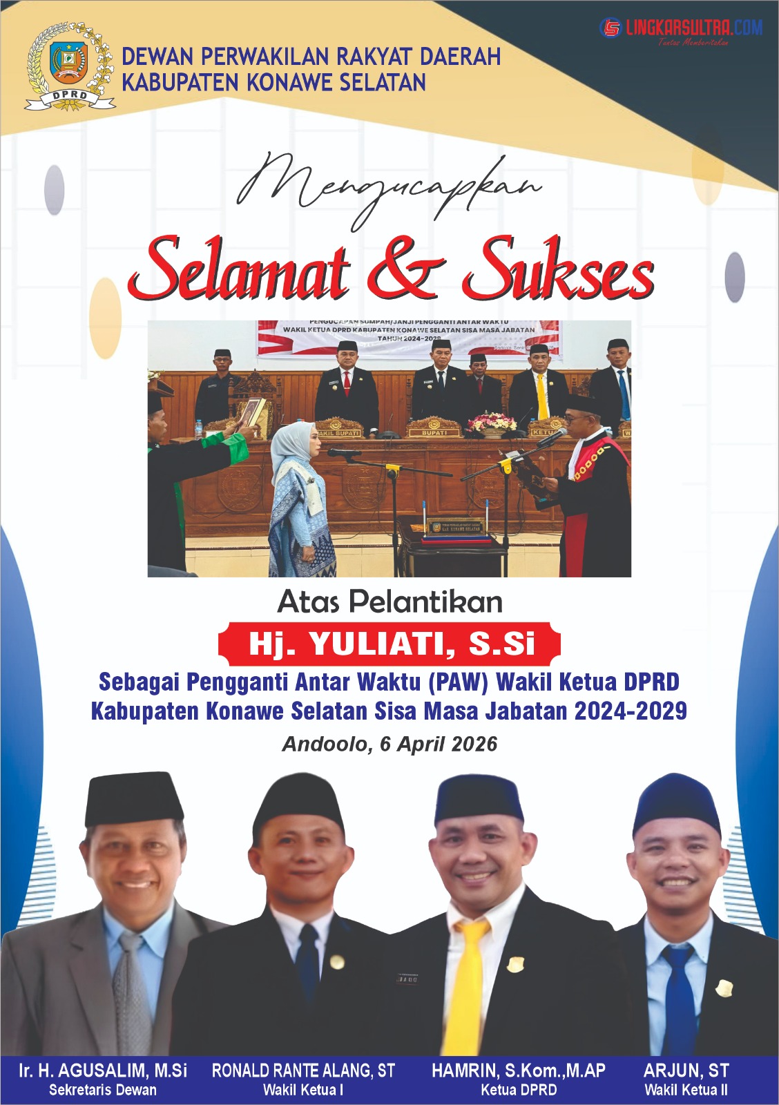 Pelantikan Pimpinan DPRD, Bupati Irham Kalenggo Tekankan Kolaborasi Yang Solid