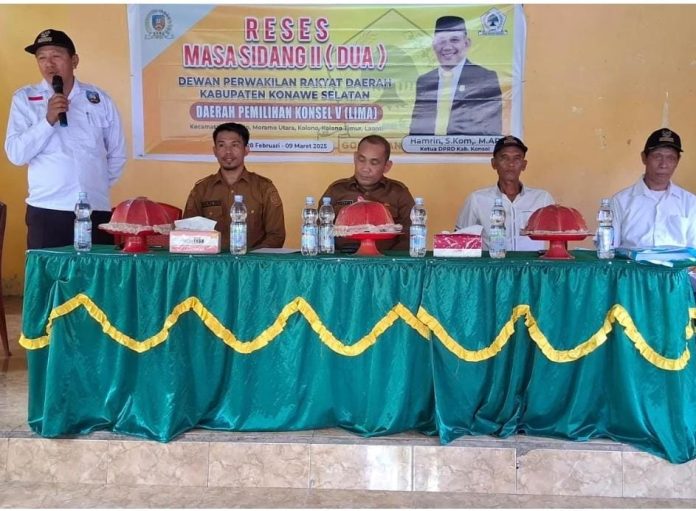 KONAWE SELATAN – LINGKARSULTRA.COM – Ketua Dewan Perwakilan Rakyat Daerah (DPRD) Kabupaten Konawe Selatan (Konsel) Hamrin, menggelar Reses Masa Sidang II di Desa Kondoano, Kecamatan Laonti Kabupaten Konawe Selatan, Jumat (28/2/2025).