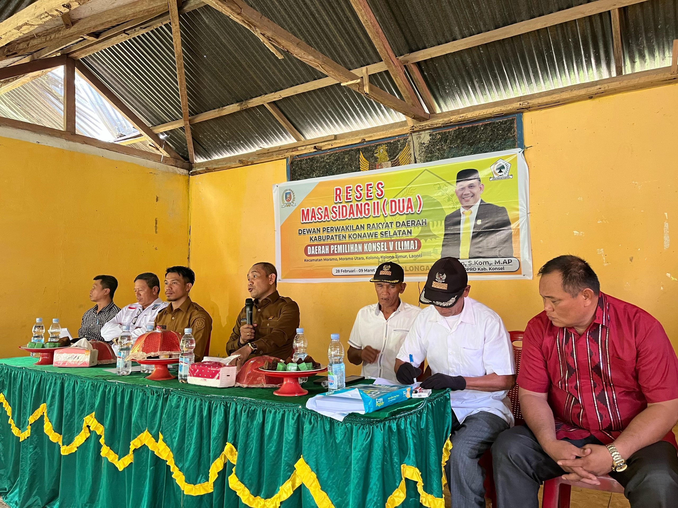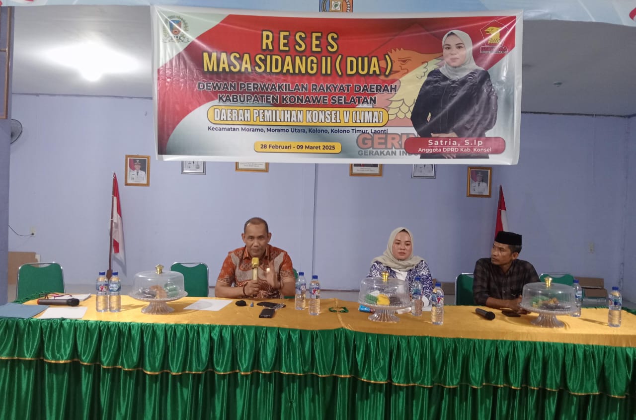 Satria, Anggota DPRD Konawe Selatan melakukan Reses Masa Sidang ke II Tahun 2025 di Desa Lombuea Kecamatan Moramo Utara pada hari Jumat, tanggal 8 Maret 2025, dihadiri Kepala Lombuea, Sekretaris Desa, Kepala BPD, LPM, tokoh agama, perempuan dan