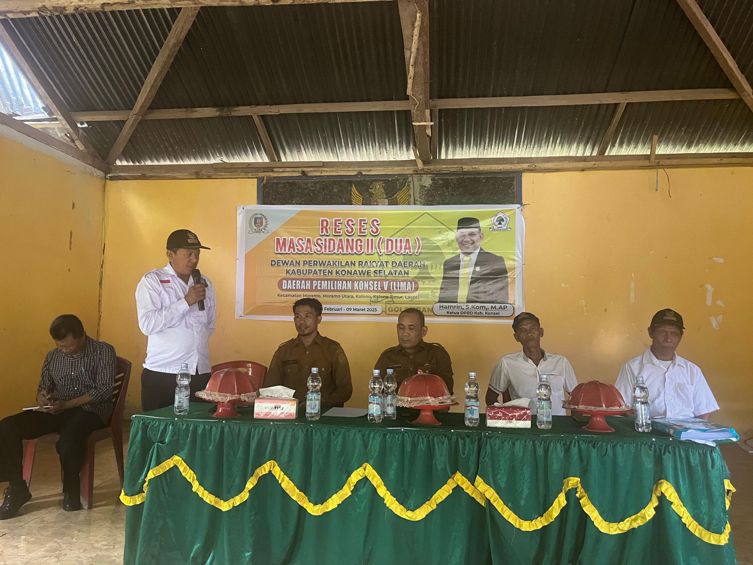 Ketua DPRD Konawe Selatan, Hamrin melakukan Reses pada hari Jumat, tanggal 8 Maret 2025 di Desa Lombuea Kecamatan Moramo Utara dihadiri Kepala Desa Lombuea, Kepala BPD, LPM, tokoh Agama, perempuan dan masyarakat Desa Wawatu.