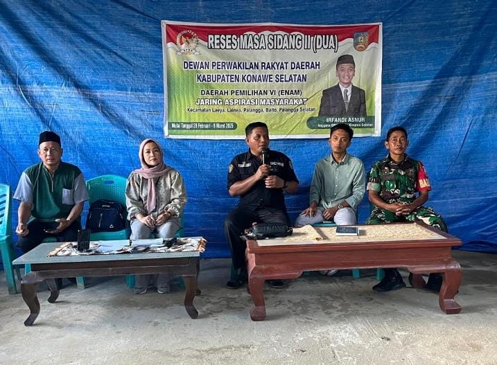 Irfandi Asnur, Anggota DPRD Konawe Selatan melaksanakan Reses Masa Sidang II Tahun 2025 pada tanggal 7 Maret tahun 2025. di Balai Desa Lamong Jaya Kecamatan Laeya. Dihadiri Kades Lamong Jaya, BPD, tokoh masyarakat, dan masyarakat Desa Lamong Jaya.
