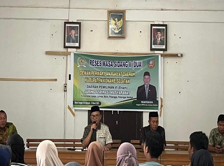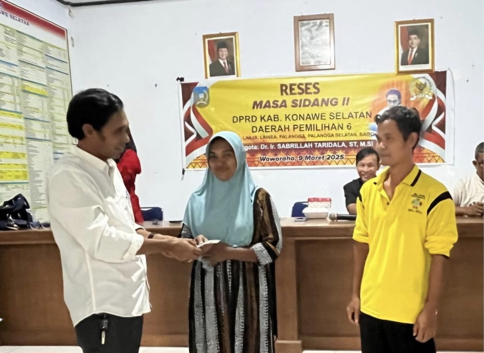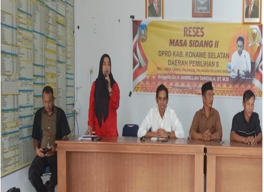 Anggota DPRD Konawe Selatan, Sabrillah Taridala melaksanakan Reses Masa Sidang II Tahun 2025 pada tanggal 9 Maret 2025 di Balai Desa Waworaha Kecamatan Laeya. Dihadiri Kades Waworaha, BPD, tokoh masyarakat, dan masyarakat Desa Waworaha.