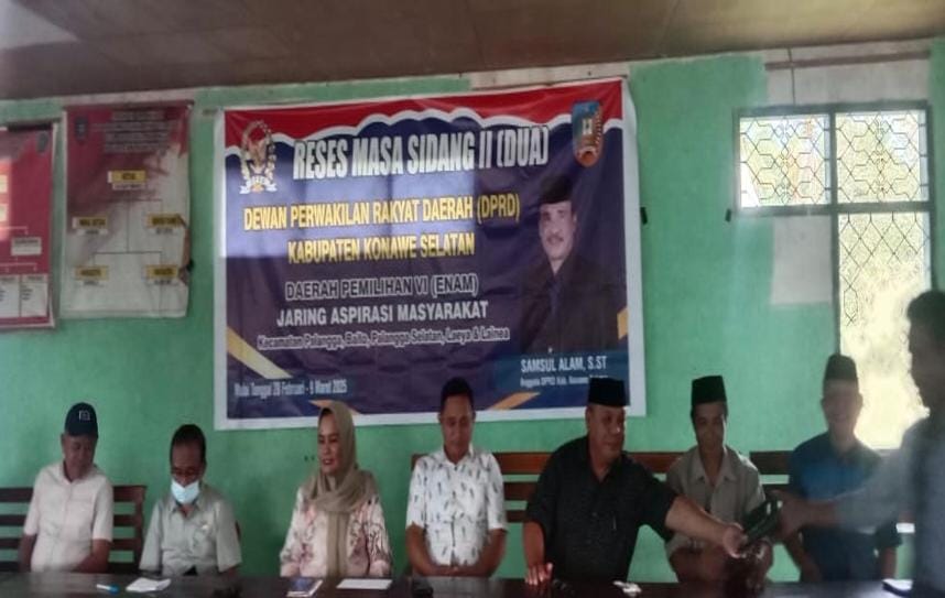 Samsul Alam, Anggota DPRD Konawe Selatan melaksanakan Reses Masa Sidang II Tahun 2025 pada tanggal 9 Maret tahun 2025 di Balai Desa Aosole Kecamatan Palangga. Dihadiri Kades Lamong Jaya, BPD, tokoh masyarakat, dan masyarakat Desa Palangga.