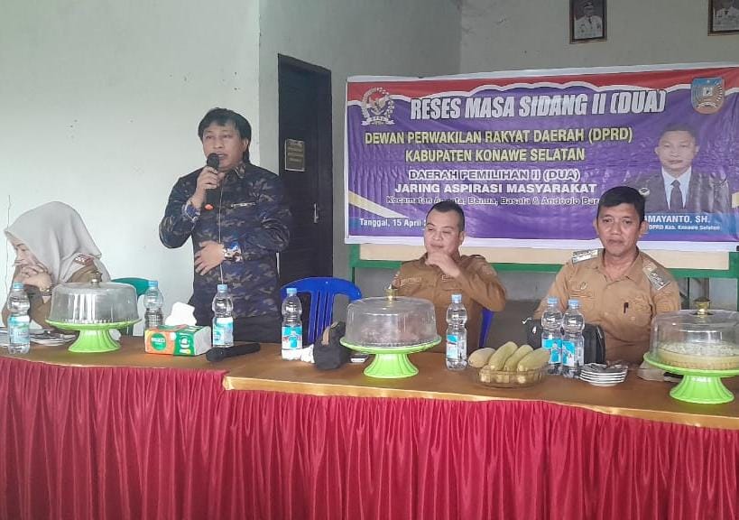 Purnomo, Anggota DPRD Konawe Selatan melaksanakan Reses Masa Sidang II pada tanggal 7 Maret tahun 2025 di Balai Desa Papawu Kecamatan Andoolo Barat. Dihadiri Kades Papawu, BPD, tokoh masyarakat, dan masyarakat Desa Papawu.