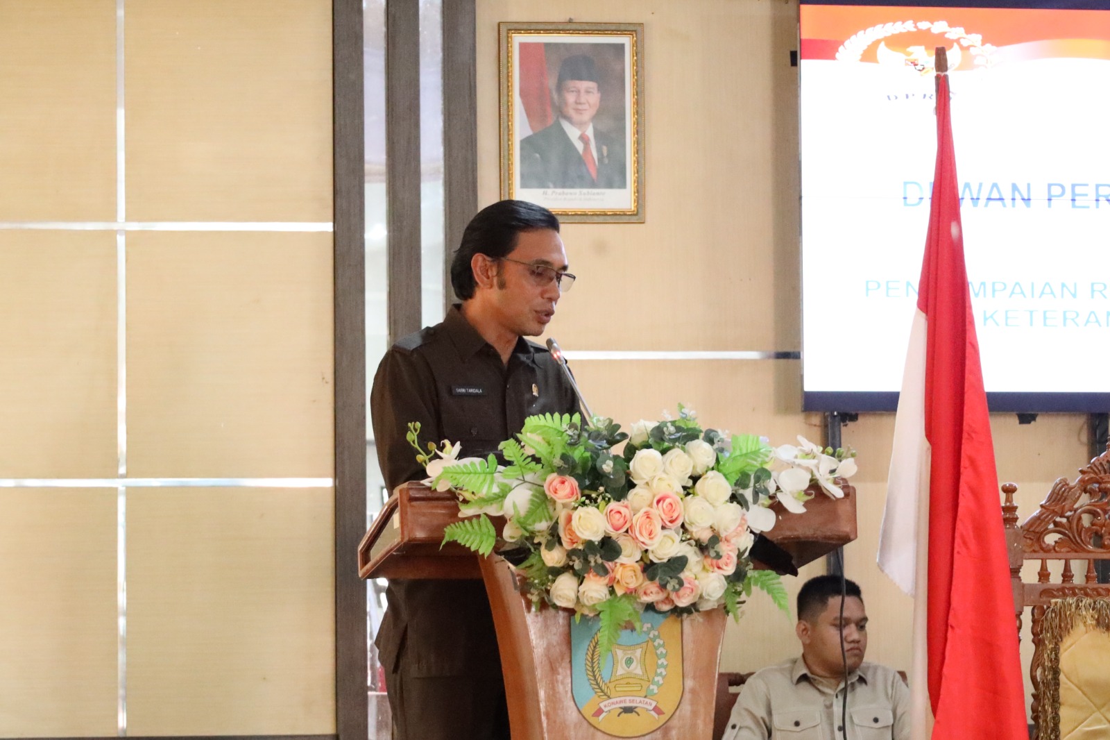 Ketua DPRD Konsel, Hamrin, S.Kom.,M.Ap., dalam sambutannya menyampaikan apresiasi kepada Bupati dan jajaran Pemerintah Daerah atas penyampaian LKPJ.