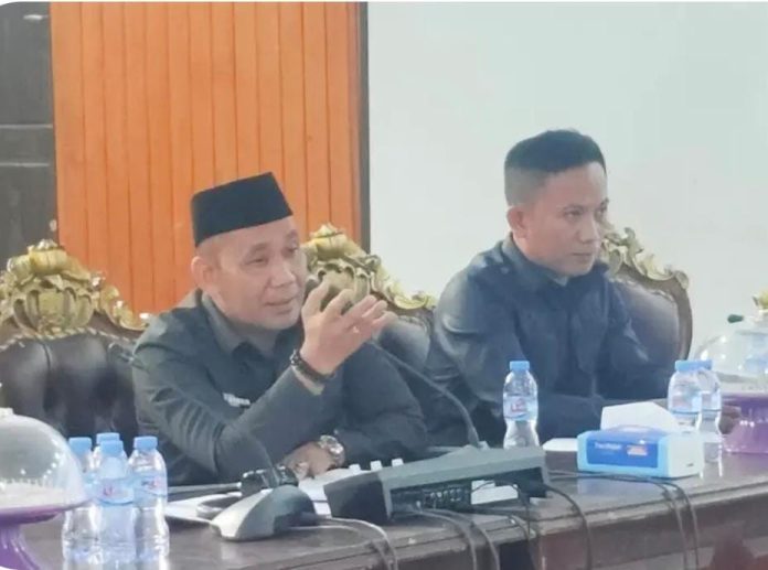Anggota DPRD Konawe Selatan, Purnomo (baju kuning saat menyampaikan pendapatnya. Foto: Lan