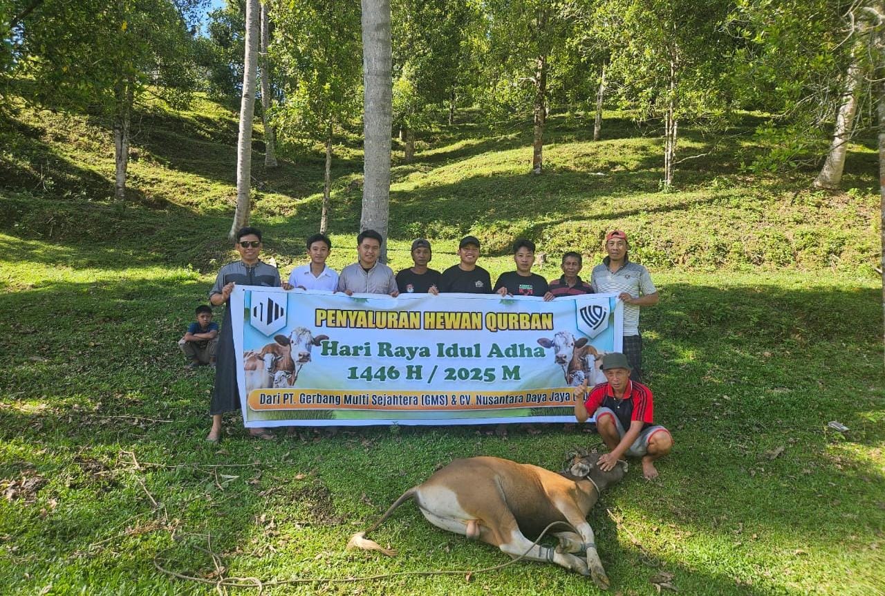 KONAWE SELATANLINGKARSULTRA.COM – PT Gerbang Multi Sejahtera (GMS) dan CV Nusantara Daya Jaya (NDJ) perusahaan tambang di Kecamatan Laonti Kabupaten Konawe Selatan (Konsel) kembali menyalurkan sapi kurban di Hari Raya Idul Adha 1446 Hijriah.