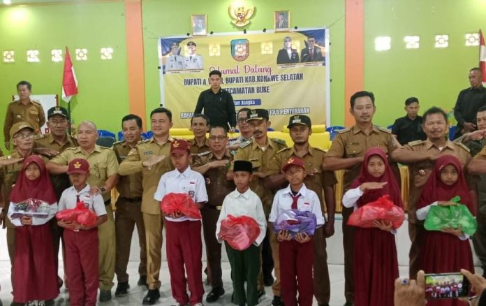 Senin, 21 Juli 2025: Kecamatan Andoolo Barat (10 Desa), Andoolo (8 Desa), dan Buke (16 Desa) telah menjadi wilayah pertama yang menerima bantuan seragam sekolah geratis yang diserahkan langsung oleh Wakil Bupati Konsel, Wahyu Ade Pratama Imran, di Desa Rahamenda.