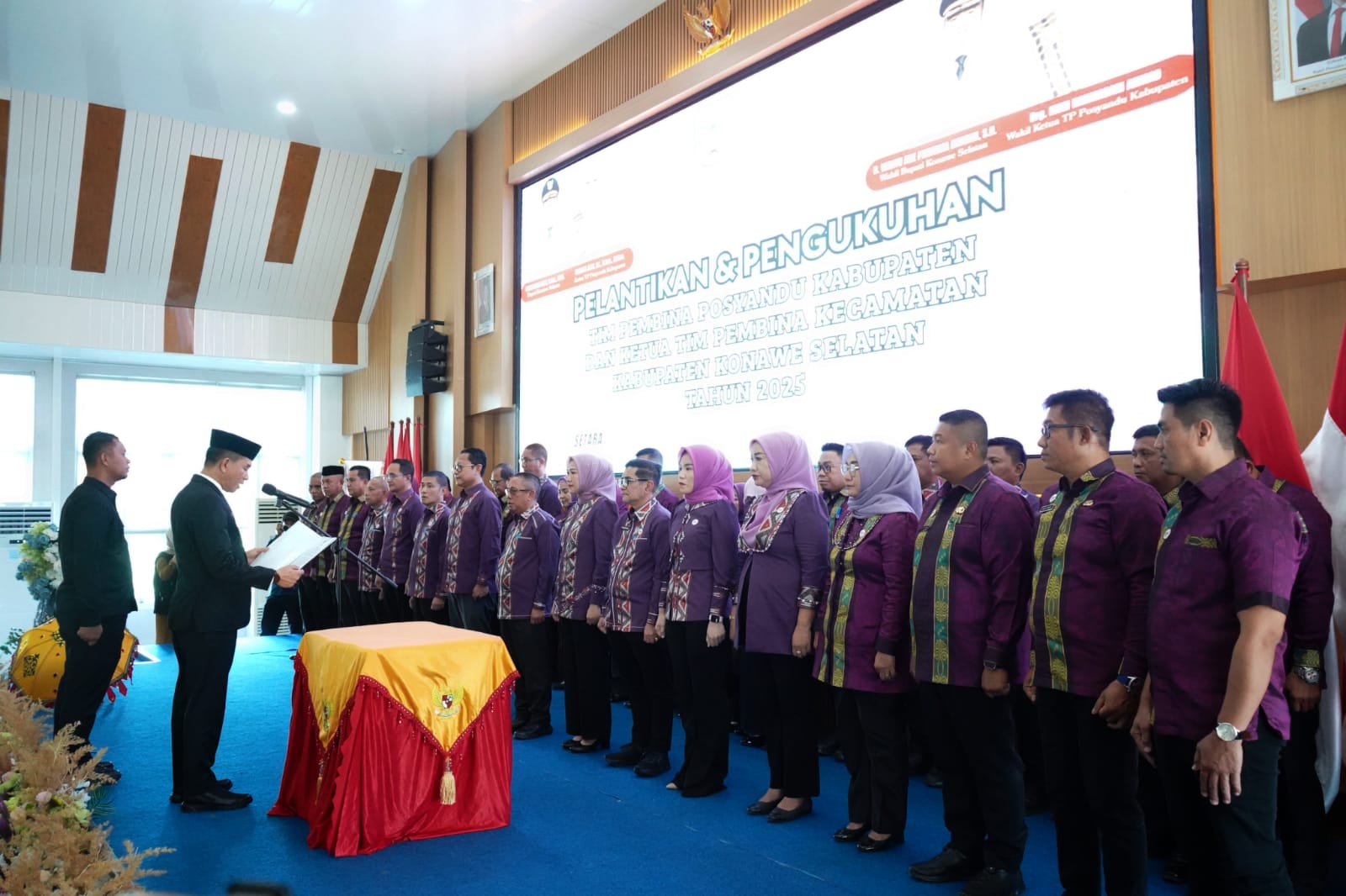 Bertempat di Auditorium Kantor Bupati Konawe Selatan, Senin (28/7/2025) dilaksanakan Pelantikan Tim Pembina Posyandu Kabupaten dan Ketua Tim Pembina Posyandu Kecamatan se-Kabupaten Konawe Selatan.
