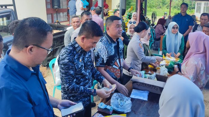 Bupati Konsel, Irham Kalenggo bersama Wakil Bupati, Wahyu Ade Pratama Imran saat menggelar Gerakan Pangan Murah dengan turun langsung melayani masyarakat. Foto: Ist