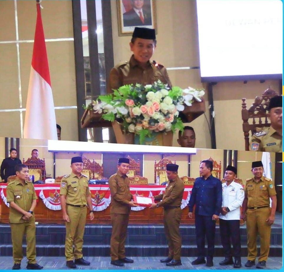 KONAWE SELATAN – LINGKARSULTRA.COM – Bupati Konawe Selatan (Konsel) menyerahkan Rancangan Kebijakan Umum Anggaran (KUA) serta Prioritas dan Plafon Anggaran Sementara (PPAS) Tahun Anggaran 2026 kepada Dewan Perwakilan Rakyat Daerah (DPRD) Kabupaten Konawe Selatan dalam Rapat Paripurna di Aula DPRD Konsel, Senin (6/10/2025).