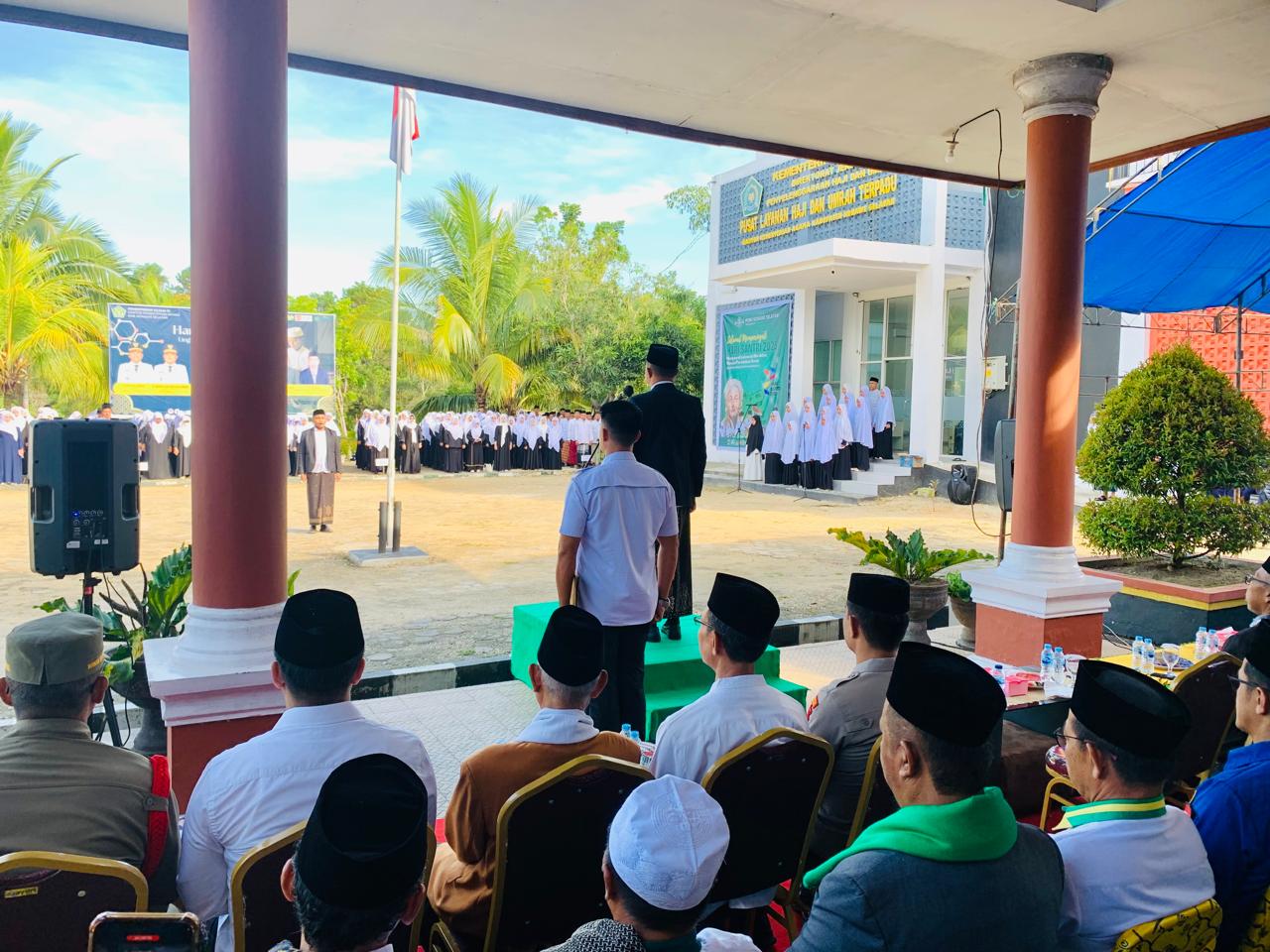 Wakil Bupati Konawe Selatan, Wahyu Ade Pratama Imran saat pimpin upacara peringatan Hari Santri tahun 2025 di Halaman Kantor Kementerian Agama (Kemenag) Konsel, Rabu (22/10/2025). Foto: Ist