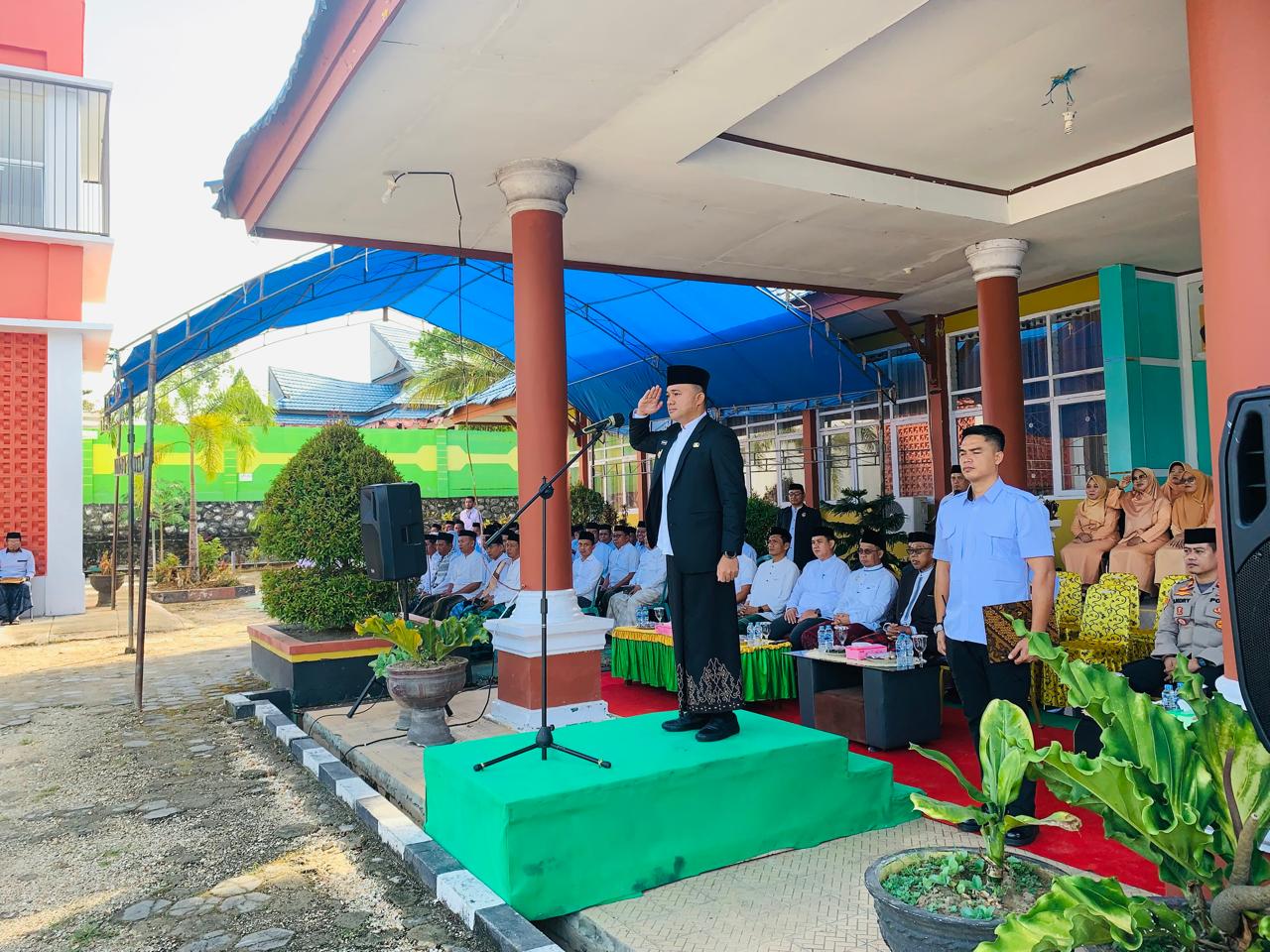 Wakil Bupati Konawe Selatan, Wahyu Ade Pratama Imran saat pimpin upacara peringatan Hari Santri tahun 2025 di Halaman Kantor Kementerian Agama (Kemenag) Konsel, Rabu (22/10/2025). Foto: Ist