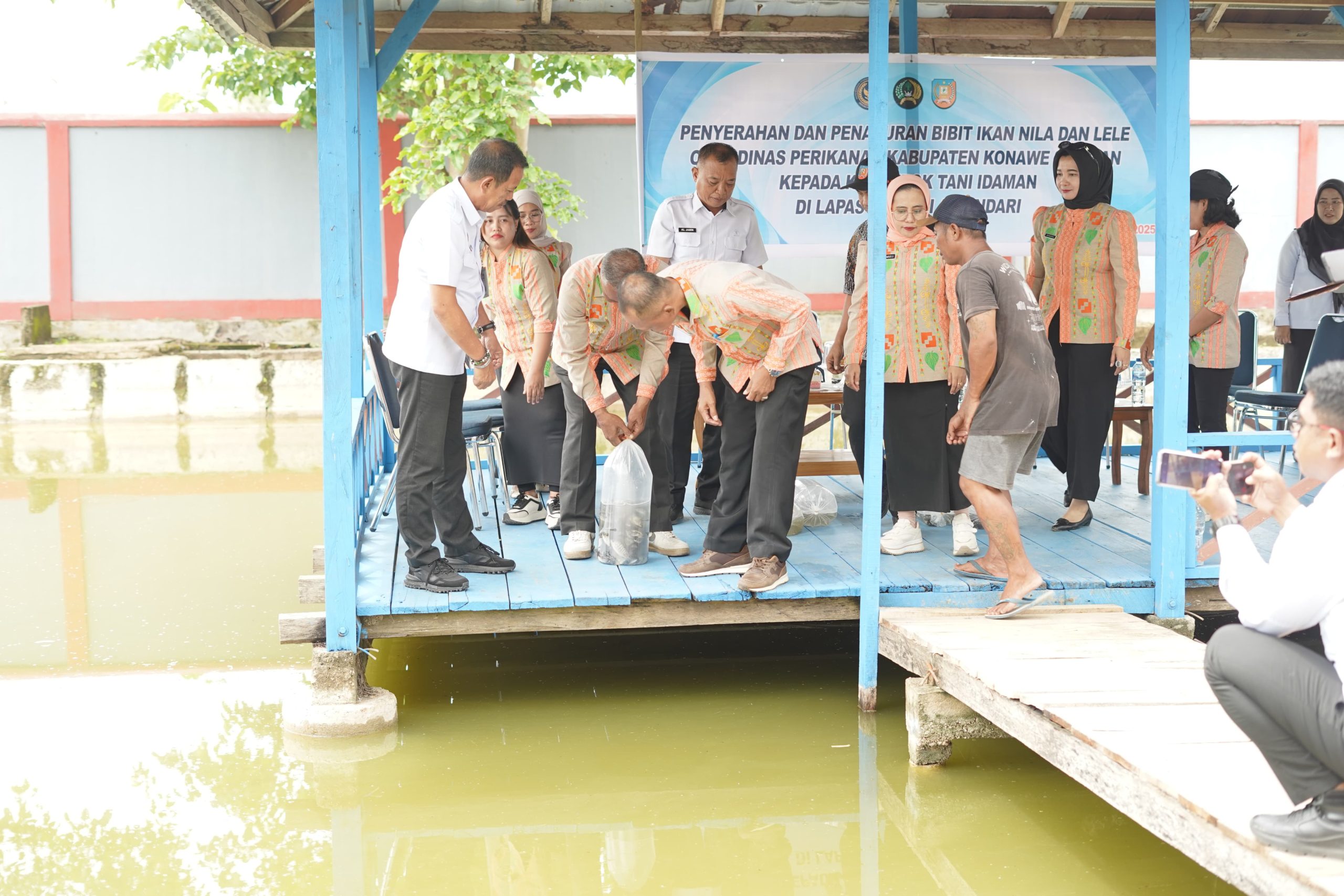 KENDARILINGKARSULTRA.COM – Pemerintah Daerah Kabupaten Konawe Selatan melalui Dinas Perikanan menyerahkan bantuan bibit ikan kepada Lembaga Pemasyarakatan (Lapas) Kelas II A Kendari, Kamis (30/10/2025).