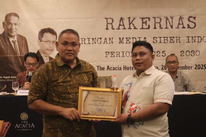 Penyerahan sertifikat tersebut dilakukan di sela-sela agenda Pengukuhan dan Rapat Kerja Nasional (Rakernas) JMSI yang berlangsung di Hotel The Acacia, Jakarta, pada Rabu, 26 November 2025.