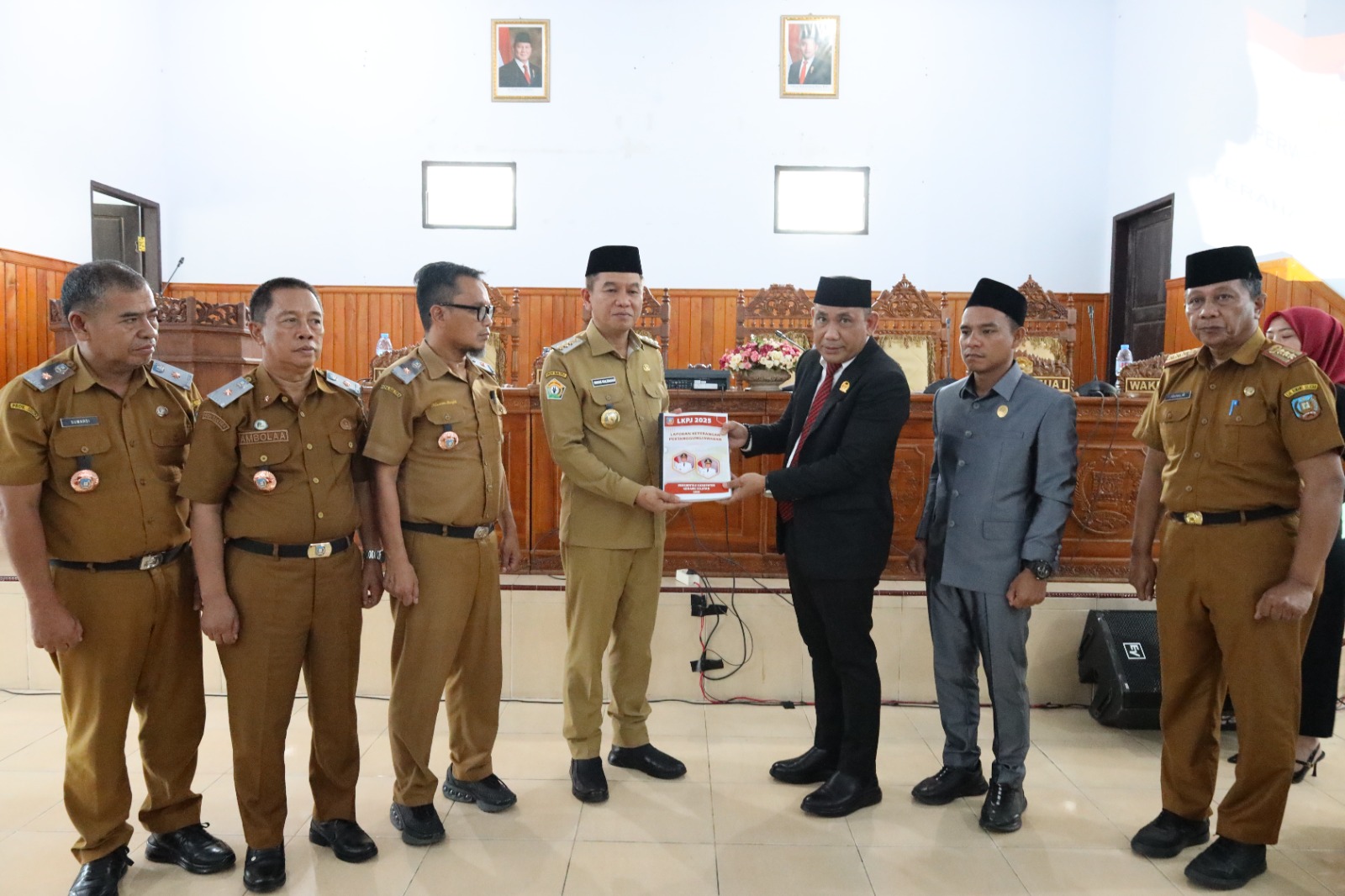 Dalam penyelengaraan pemerintahan yang disampaikan oleh pemerintah daerah kepada DPRD memuat hasil penyelenggaraan urusan pemerintahan yang menyangkut laporan pertanggungjawaban kinerja yang dilaksanakan oleh pemerintah daerah selama satu tahun anggaran serta hasil Rekomendasi Dewan Perwakilan Rakyat Daerah Kabupaten Konawe Selatan atas Laporan Keterangan Pertanggungjawaban Bupati Kabupaten Konawe Selatan Tahun Anggaran 2025 sebagaimana tertuang dalam Keputusan Dewan Perwakilan Rakyat Daerah (DPRD) telah menjadi perhatian dan telah kami tindak lanjuti melalui implementasi program kegiatan.