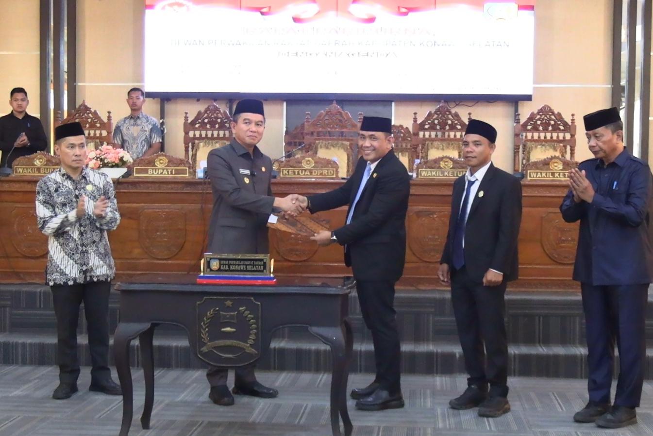 Rapat paripurna ini diakhiri dengan penyerahan rekomendasi DPRD kepada pemerintah daerah sebagai acuan dalam penyusunan perencanaan pembangunan di tahun anggaran berikutnya yang disaksikan 28 Anggota DPRD Konsel, Sekda Konsel, Forkopimda dan sejumlah Kepala OPD lingkup Pemkab Konawe selatan.